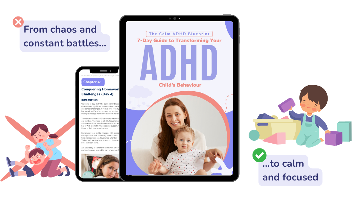 I get it – that's why the 7-Day Calm ADHD Blueprint has been designed this for busy, overwhelmed parents. You'll spend just 10 minutes a day reading, and the strategies are simple to implement right away. Many parents actually save time once they start using these techniques!